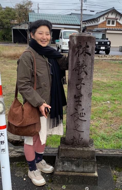*画像は「歌子生誕の地(大野市水落町)」で微笑むときわさん